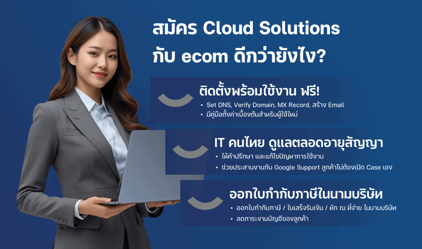 ecom เป็นหนึ่งใน Premier Partner ของ Google Workspace และเป็นพาร์ทเนอร์ Google Cloud ในไทย